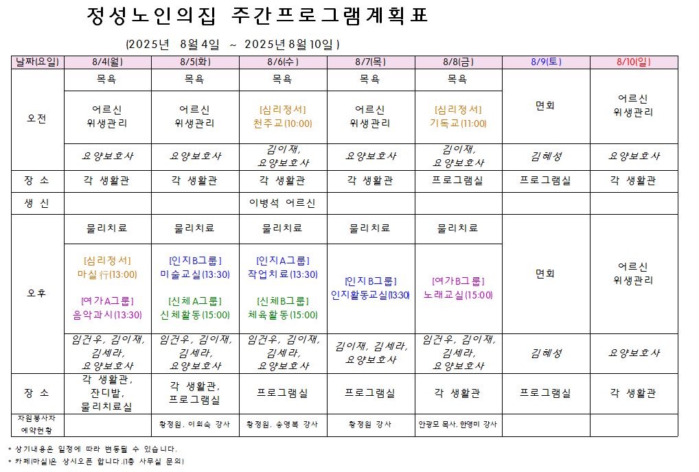 주간프로그램계획(2025.8.4.~8.10.)