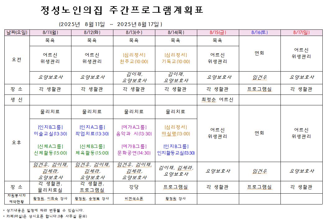 주간프로그램계획(2025.8.11.~8.17.) 작성일 25-08-11 13:58 본문 . 목록 이전글주간프로그램계획(2025.8.18.~8.24.) 25.08.18 다음글주간프로그램계획(2025.8.4.~8.10.) 25.08.04